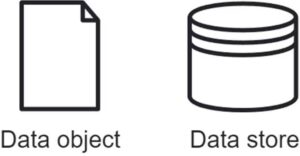 - Data objects symbolize individual, transient, and process-specific information, such as an invoice or a job application. Data objects are represented as a piece of paper with a turned-down corner.